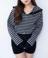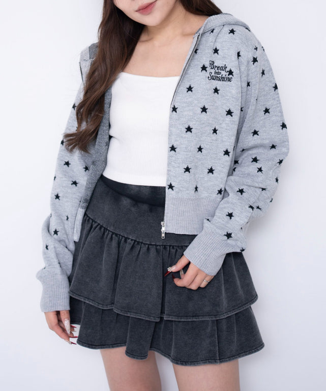 【レイヤード映え!韓国ムード 総柄ジャガードニットパーカー】