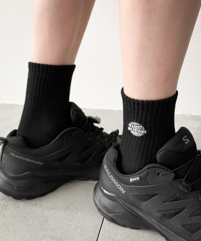 シンプルな中にアクセントを効かせた、ワンポイント刺繍入りハイアンクルソックス。