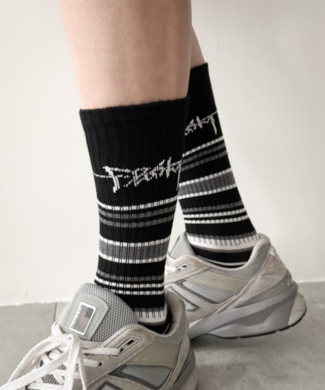 配色にメリハリを効かせたデザインで、スニーカーやローファーなど幅広いスタイルと好相性。