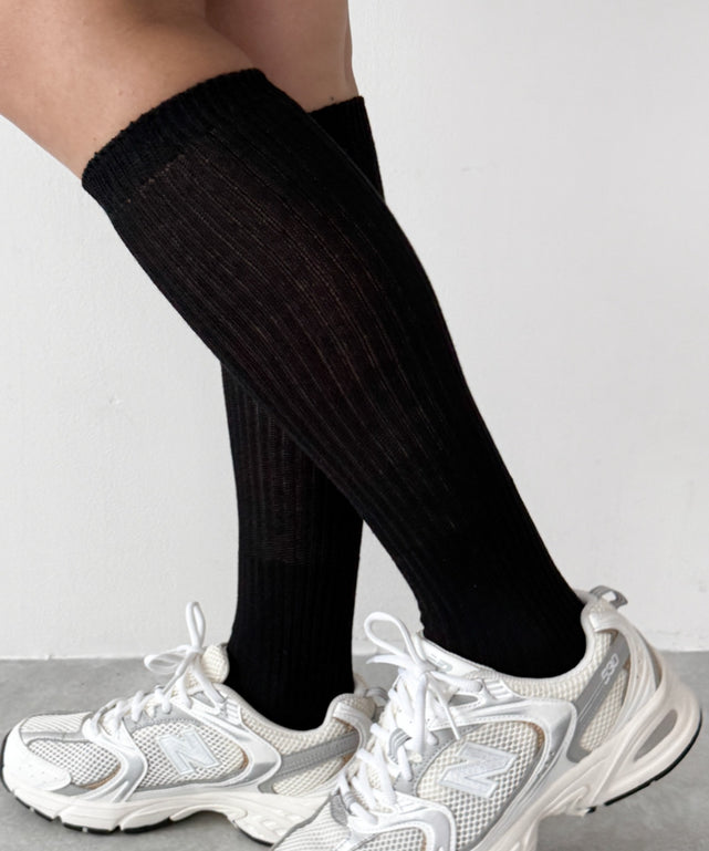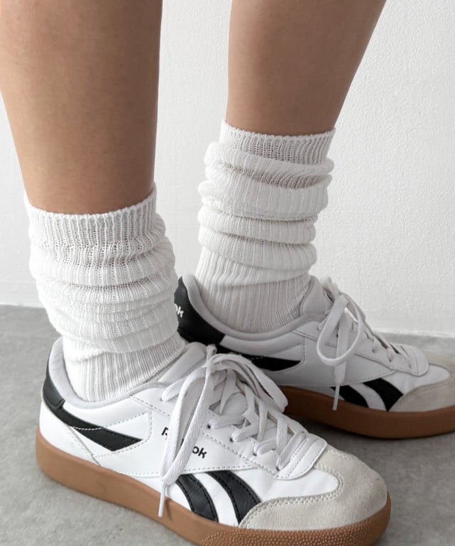 ルーズにも、きれいめにも履ける2WAY仕様のリブハイソックス。