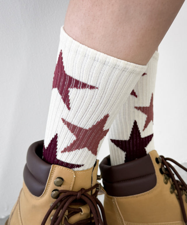 インパクトのあるスターデザインが目を引くメンズソックス。