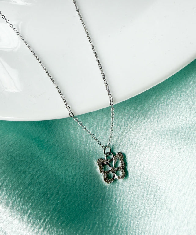 ハイネックの上からでも、デコルテに直接でも、綺麗なシルエットをキープ。