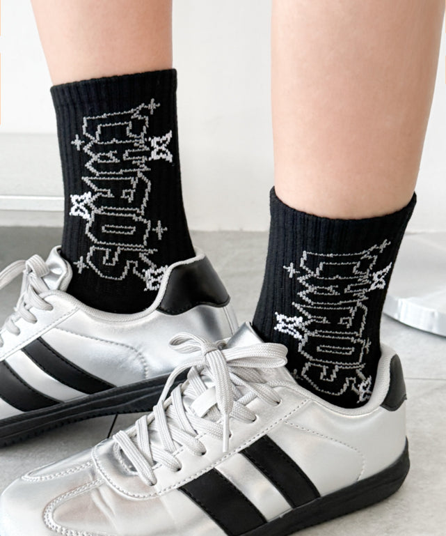 ストリートライクな“CHAOS”ロゴが足元にアクセントを添えるリブソックス。