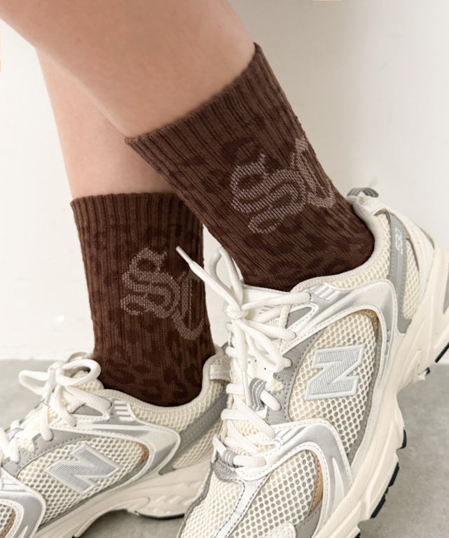 ラメ入りのロゴとレオパード柄を組み合わせた、足元を華やかに彩るレディースソックス。