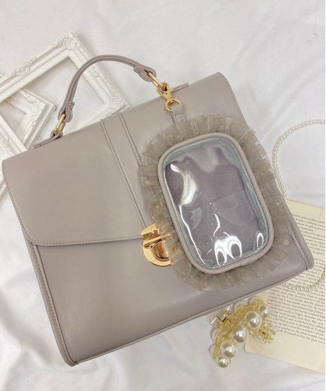 ベルト飾り、さらにクリア窓枠にはパール飾りと