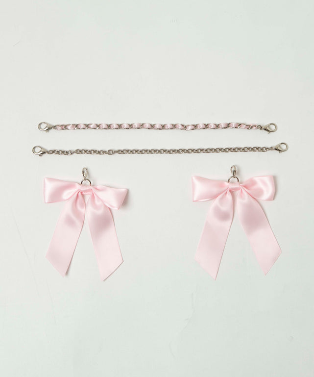 定番のリボンセットにプラスして、リボンとお揃いチェーン&シンプルチェーンの豪華2本セット!