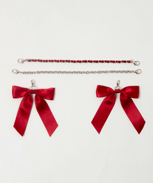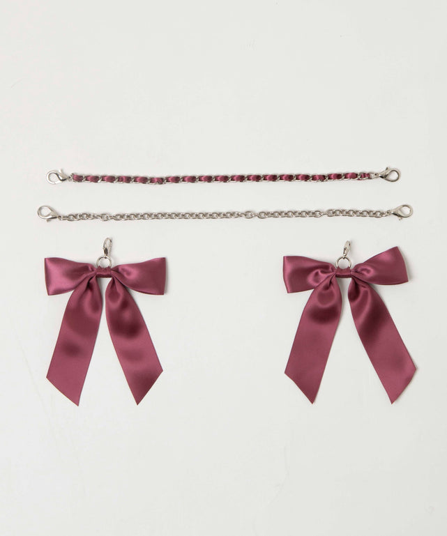 定番のリボンセットにプラスして、リボンとお揃いチェーン&シンプルチェーンの豪華2本セット!