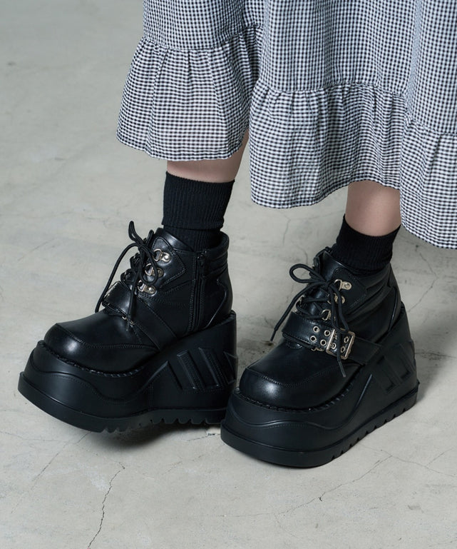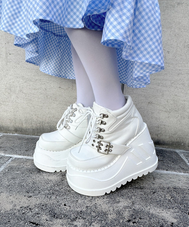 ベルトデザインでほどよいパンク感がとびきりかわいい厚底シューズ。