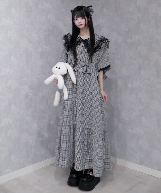 おおきな襟にはぷりぷりレースがぐるっと付いているので、顔が小さく見えちゃうかもっ❕