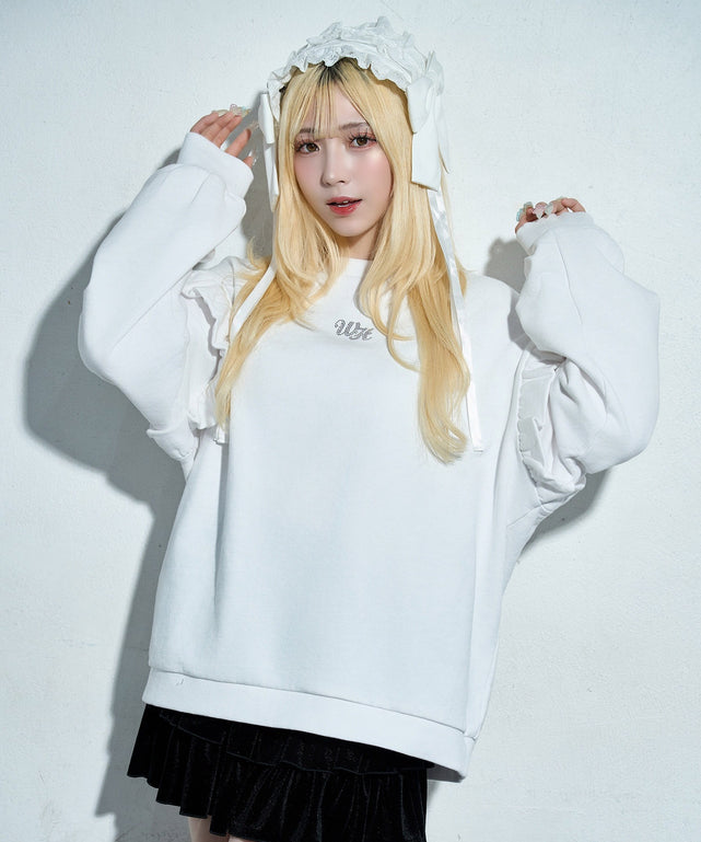 胸元のラインストーンと袖のひらひらフリルが、とっても可愛くてぽいんとなのです♡