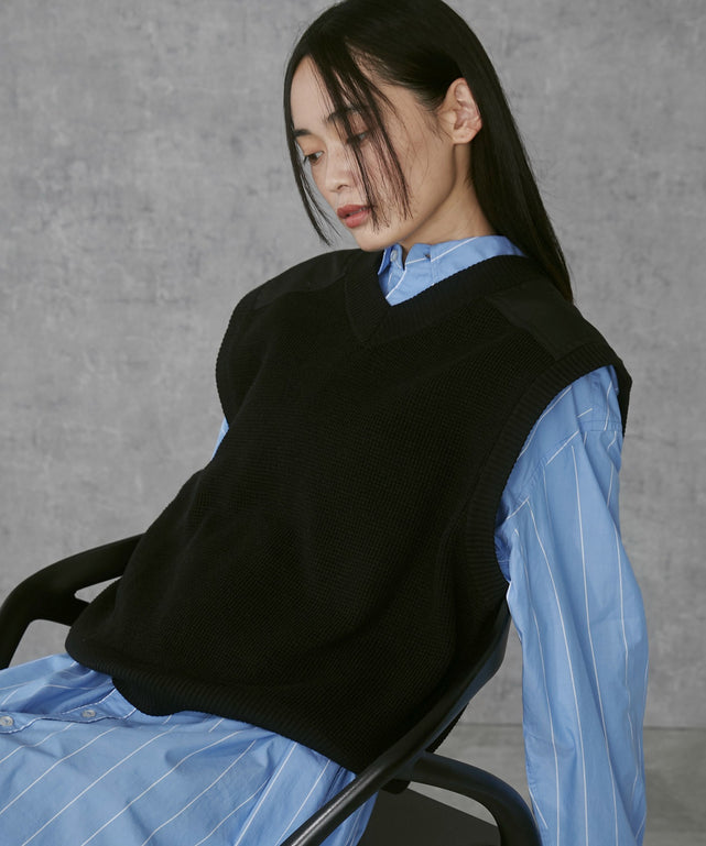 ミリタリーのコマンドニットをアレンジしたVネックベスト。