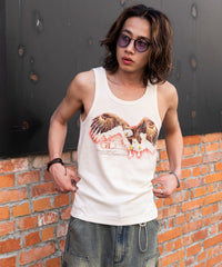 メンズアイテムには珍しいグラフィックを施したタンクトップ。