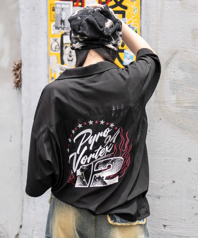 ヴィンテージ感あるグラフィックが表現されたオープンカラーショートスリーブシャツ。